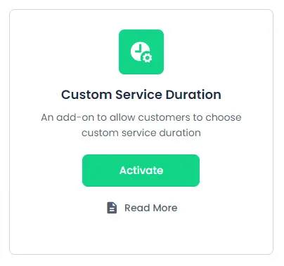 Get and Activate Custom Service Duration Addon from BookingPress -> Addons